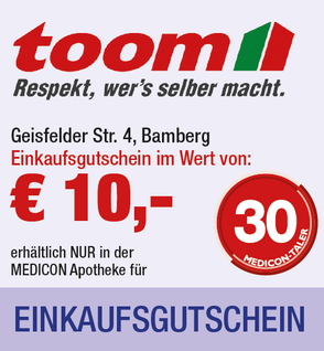 Exklusiv in der MEDICON Apotheke in Bamberg können Sie diese Gutscheine im Austausch gegen Ihre gesammelten MEDICON Taler erhalten.